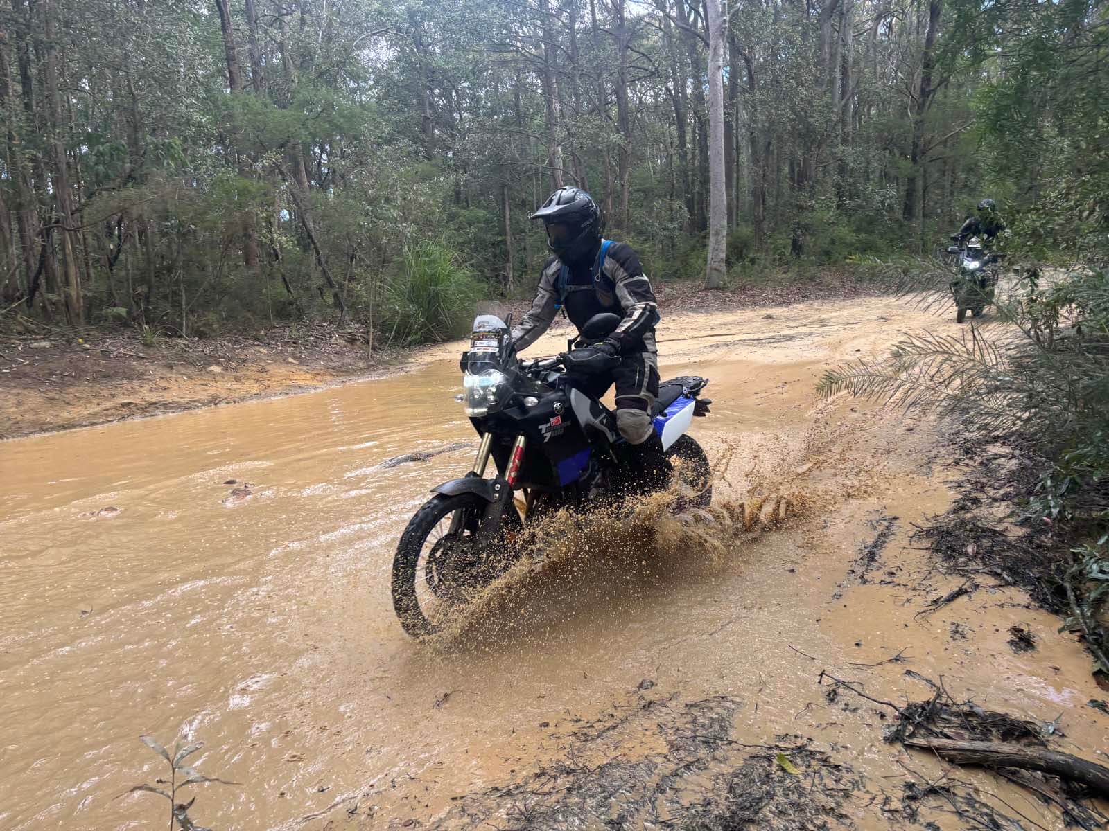 Starting from the RideADV HQ at Mangrove Mountain, the two-day intro event is aimed at people like Sam who are eager to learn off-road riding techniques. On the first day, tour leader Mick Strong takes the riders to an area where slow speed figure eight manouevres can be practised.