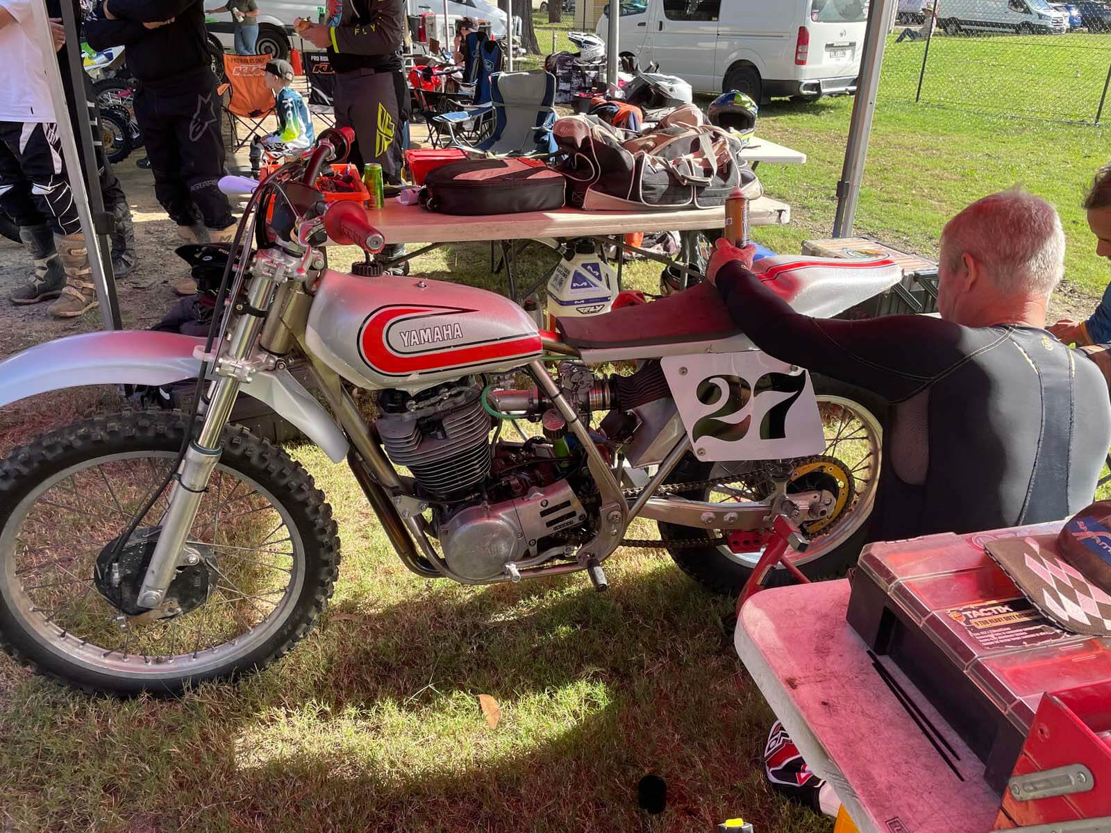 With no time to fix the carb issue, Sean then rocked up at the Sunday Slide in Somersy, NSW. His first lap resulted in another long walk across the infield, pushing the lifeless DT. The carb was removed off and a missing needle clip and oversized main jet was discovered. With more help from Jerkyl Brad in the form of a smaller main jet and a new spark plug, the DT250 fired into life and ran crisp for the rest of the day.