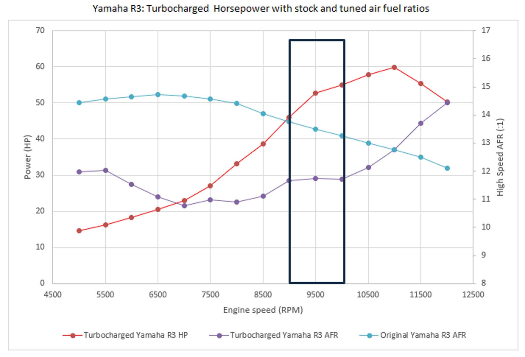 I had hoped to go a bit faster, but a combination of factors meant that 111mph (178.63 km/h) was the best we could manage on the day. I had to nurse the engine because it was running very lean at wide-open throttle, limiting how hard I could push it and the number of revs I could ask it to deliver. I initially thought that running the engine at 11000rpm with an air-fuel ratio of 12.75:1 (same as standard) would be fine and should have delivered 60hp. But because the bike is not normally aspirated, the air-fuel ratio needed to come down to something around 11:1. The air-fuel ratio problem cut the available power dramatically, and I only had 46hp to play with. As I pushed the revs higher the standard setup was approaching its limits, so I needed to play it safe.