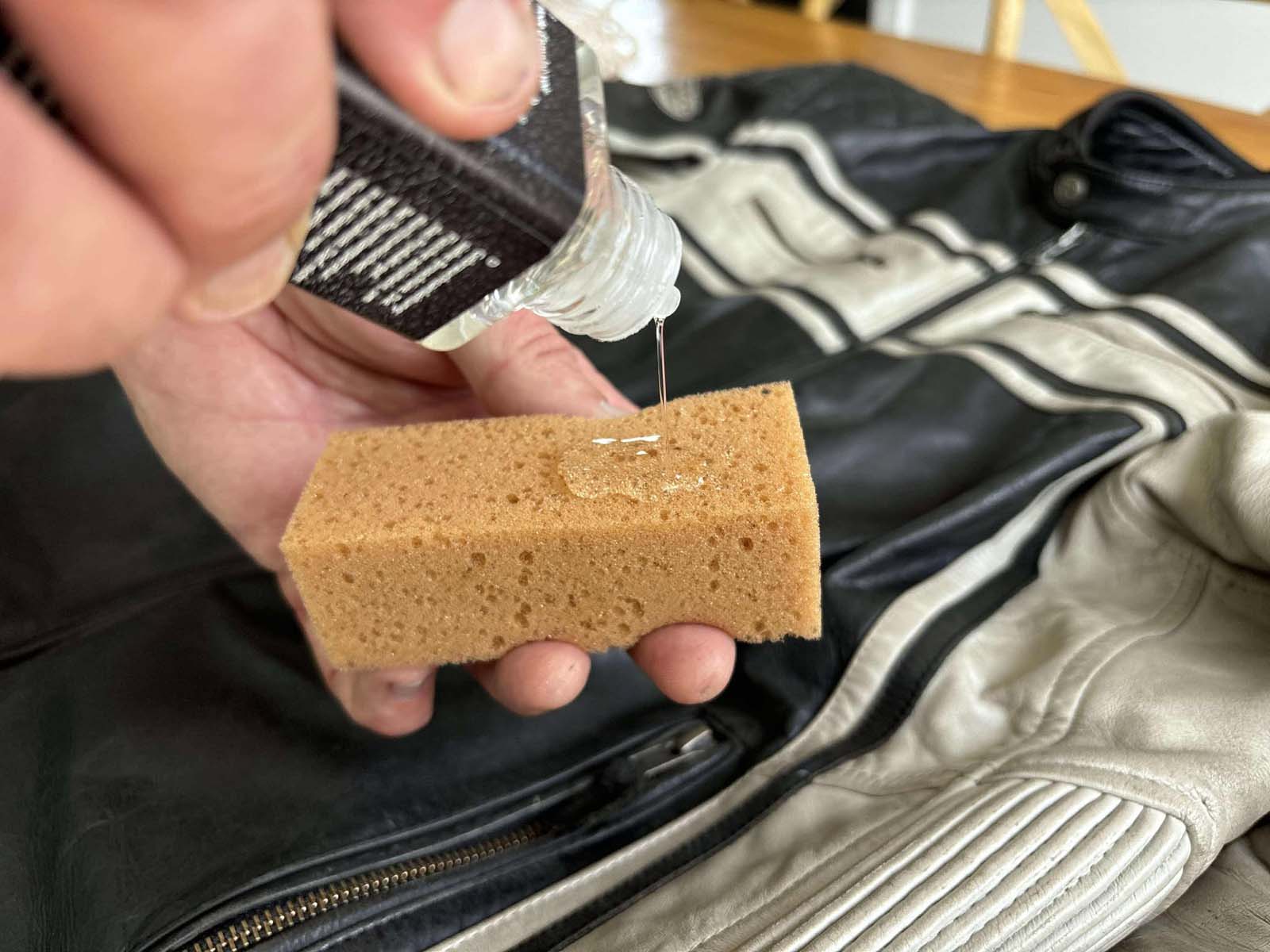 3. Pour the Leather Soft Cleaner onto a soft sponge and make it foam by squeezing it several times