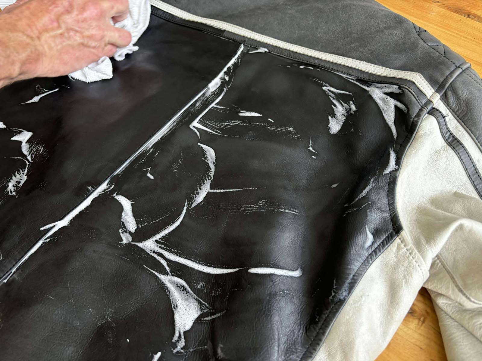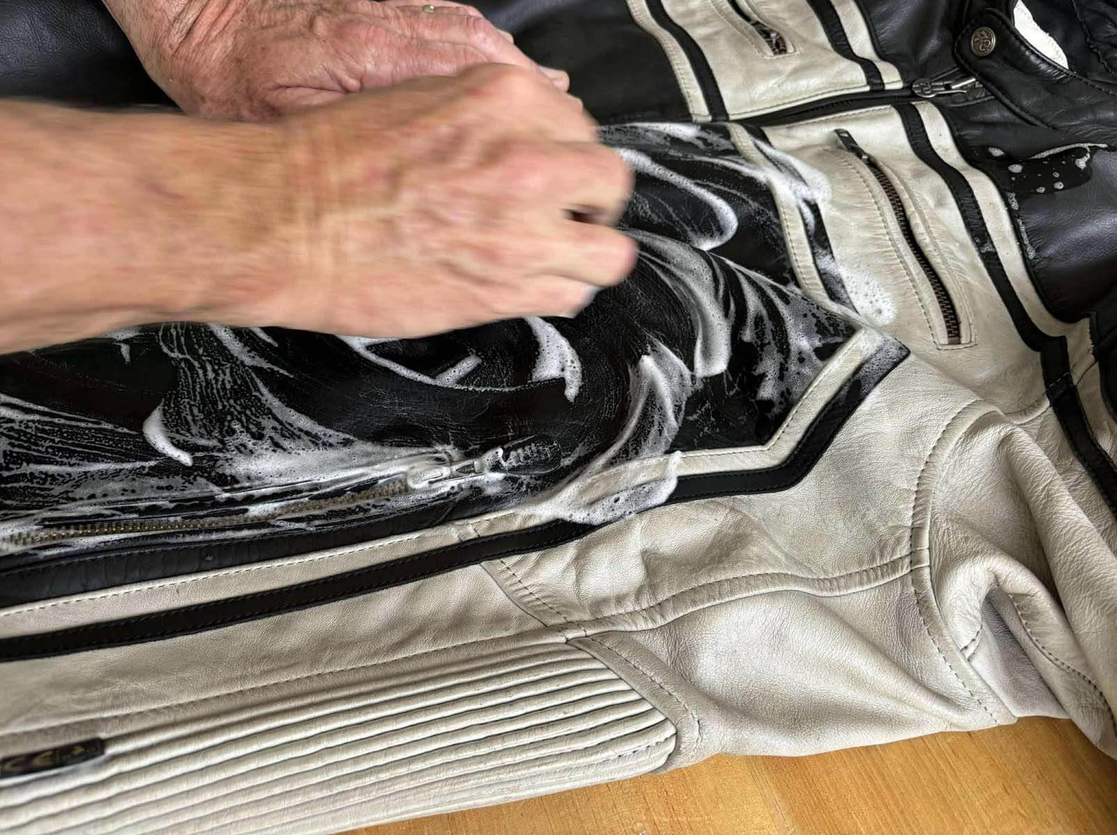 Leather Soft Cleaner is a soft moisturizing water-based cleaner that can be used on most leather motorcycle riding apparel. It removes dirty marks and most stains as well as caked on insects. Do not use it on nubuck or suede leather.