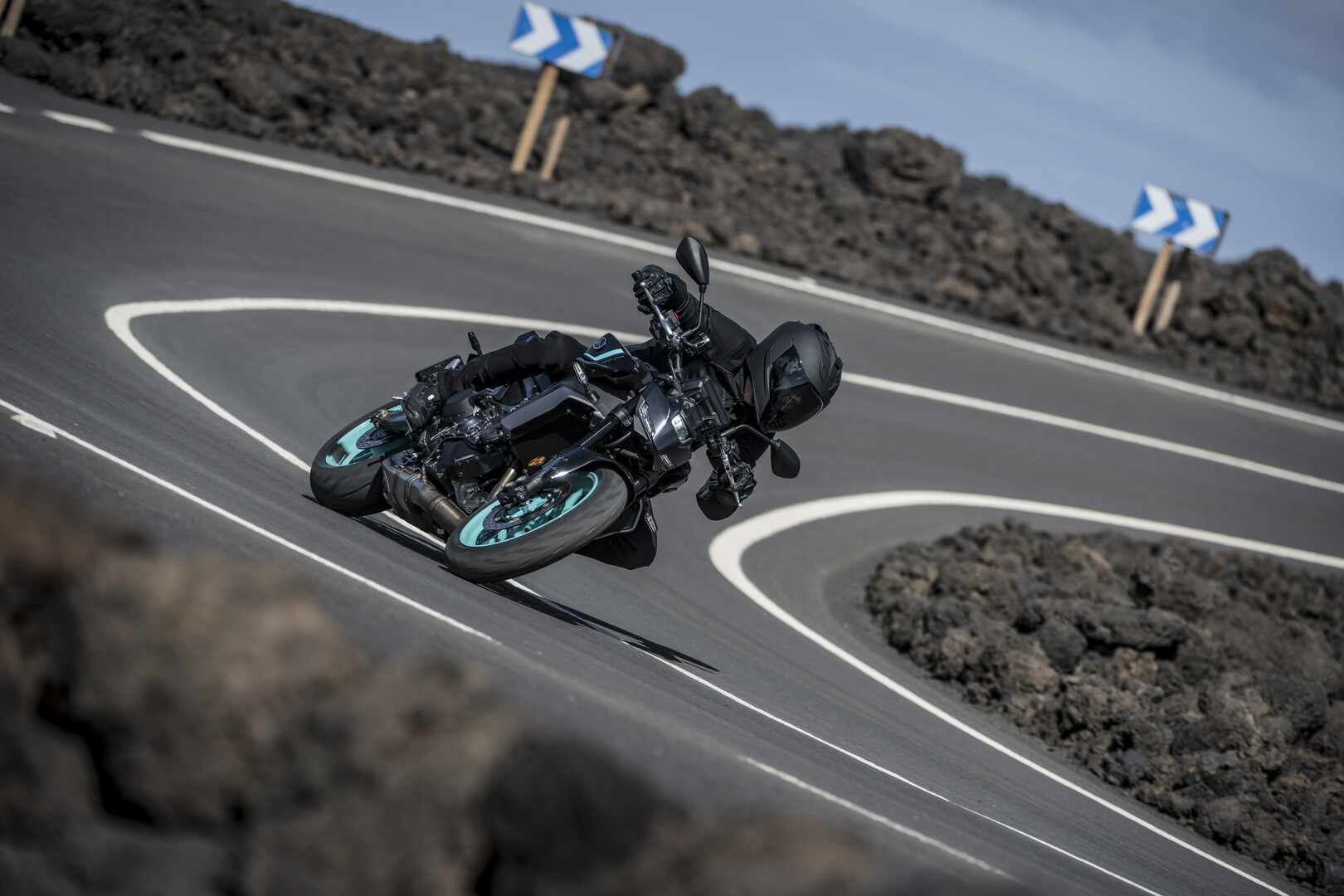 The handling improvements delivered by the new suspension are also instantly noticeable. The front end feels more stable, and the new Brembo radial master cylinder has improved the braking feel, offering a firm, responsive action right from the initial lever application. I prefer setting the adjustable brake lever a little closer to the bar, and the MT-09's braking system has no issue handling this set-up.