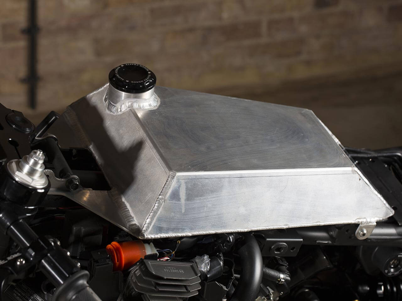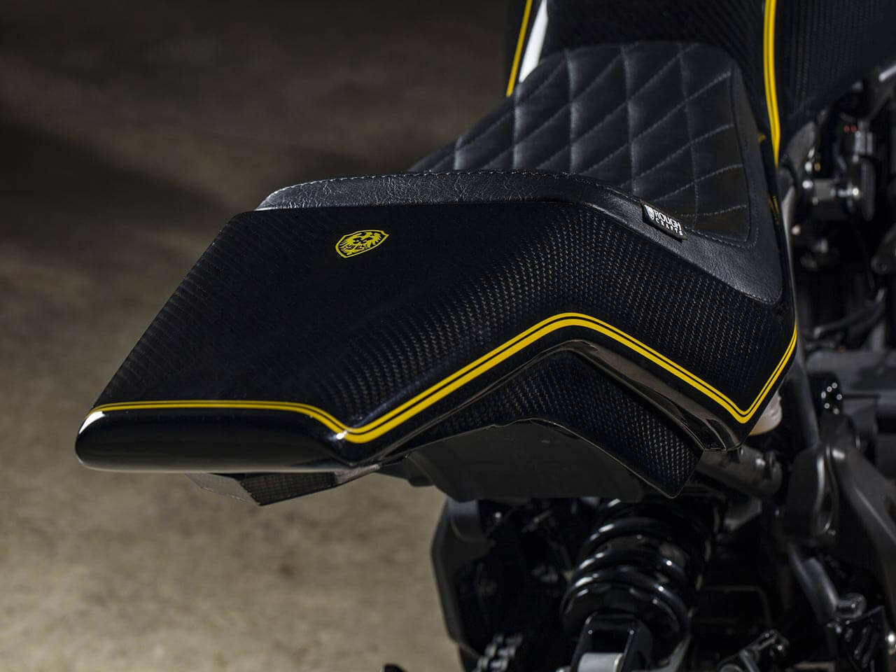 The 'Faster XSR' body kit itself was made with a full carbon fibre mono body with a smaller aluminium tank underneath, fully bolt-on without any modification, fabricated by MS Pro.