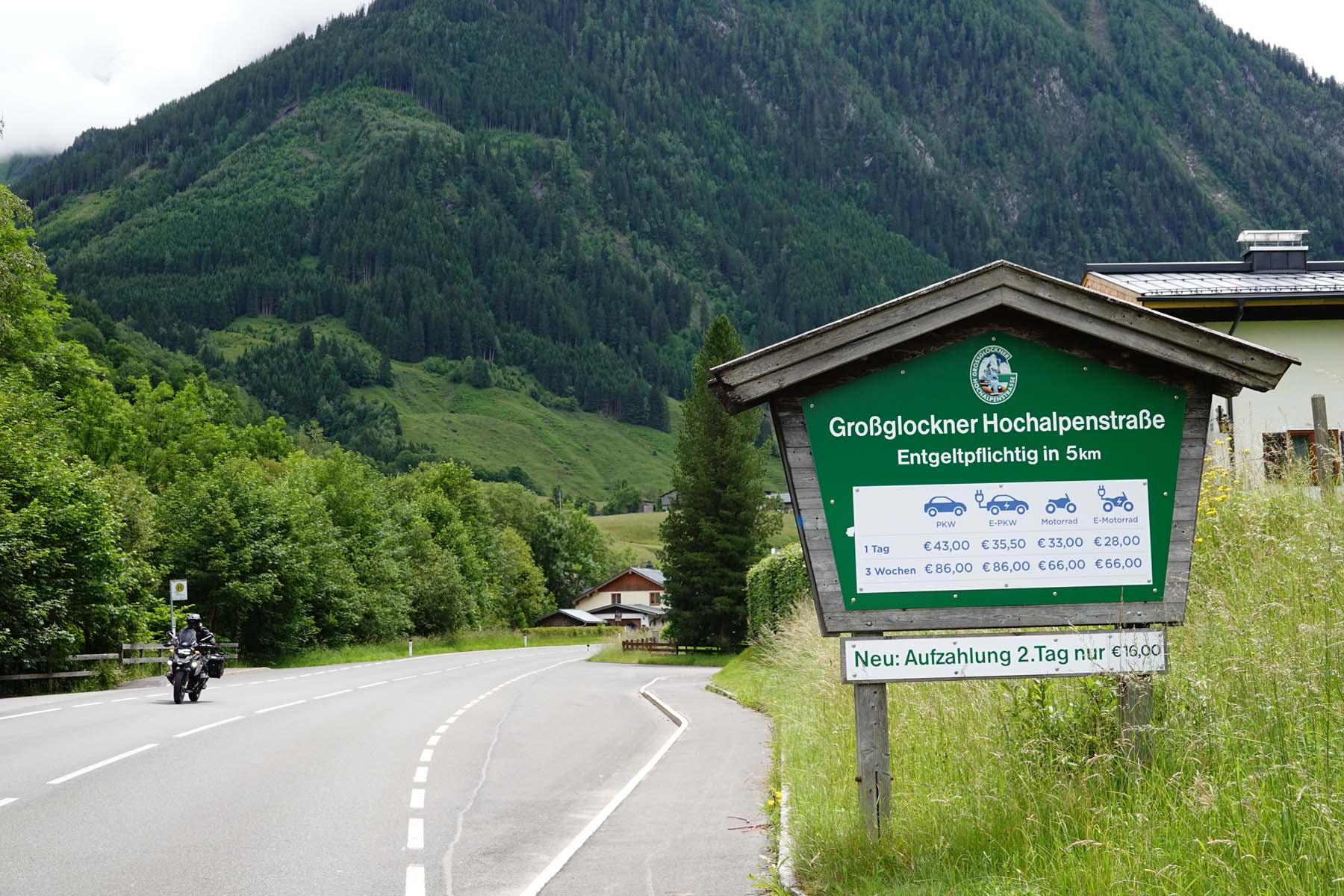 The fun starts before you even reach the road itself at Kaprun, to the north. Voetter’s Hotel, part of the MoHo motorcycle hotels association, offers not only the usual MoHo services like motorcycle and helmet cleaning facilities, dedicated tours and even a repair booth with tools, but also a motor museum. This has an intriguing collection of Austrian, German and other European bikes among the cars. A display traces the story of VW – Ferdinand Porsche is buried nearby at Zell am See. For enquiries (not about being buried), Tel. +43 6547 71340, hotel@voetterskaprun.com or www.voetterskaprun.com.