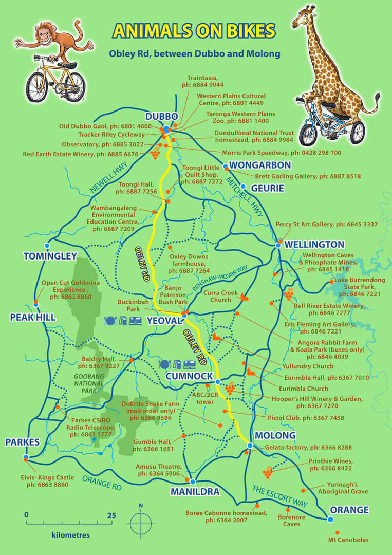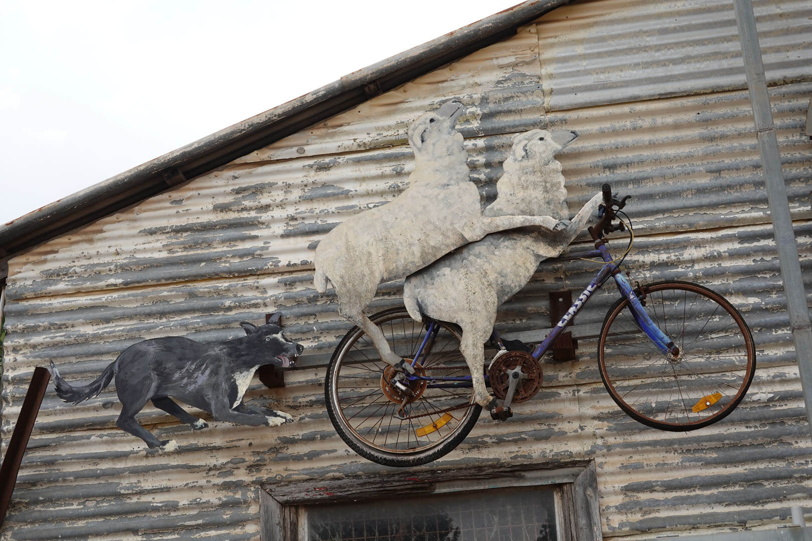 Animals on bikes came about when many of the local farmers and businesses in the Orana suffered eight years of drought. Something was needed to boast morale and to improve the economic health of these central west communities. Typically, the idea that came up involved people doing something for themselves, not just relying on help from outside. It’s difficult to work out where the idea came from for a sculpture trail of animals made by the farmers, tradespeople and anyone with a welding kit. But the genius factor came when someone had the bright idea of making the theme not just animals, but animals on bikes.