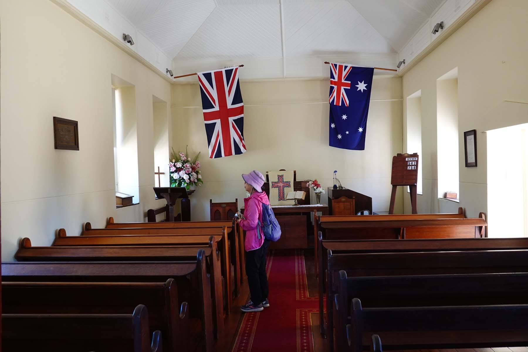 The church and its associated school are now the oldest buildings of their kind still in use in Australia. The Devonshire Teas prepared and served by lady volunteers Wednesday to Sunday, 10am to 3pm can only be described as outstanding. A large open picnic area stretches from the church down to the river, and there are clean toilets at the little group of buildings. There is plentiful, albeit gravel or grass, parking out front.