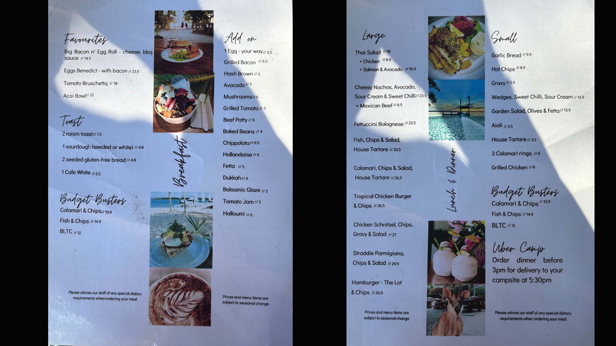 Tipplers offers additional convenience with a delivery service for those staying at the campground. Simply call the café to order, and the Tipplers staff will deliver it to your campsite.