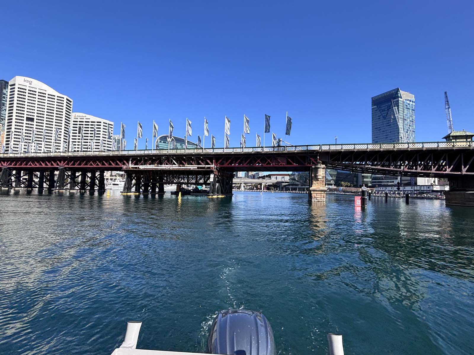 Once you’ve navigated the busy waters around the Harbour Bridge and the Opera House, you’ll turn into the quieter, sheltered area of Darling Harbour. The conditions here are typically much calmer, making it an ideal spot for docking and taking a break.